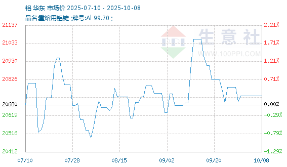9月30日生意社铝基准价为20700.00元/吨