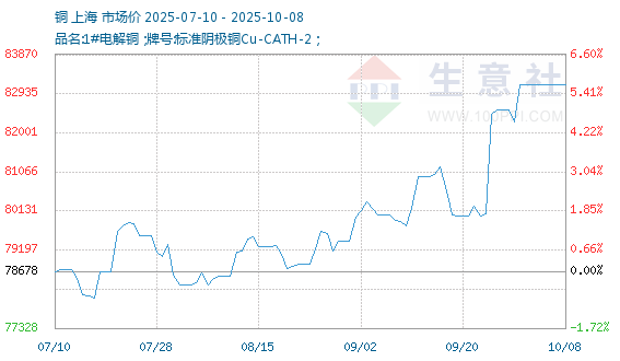 10月7日生意社铜基准价为83143.33元/吨