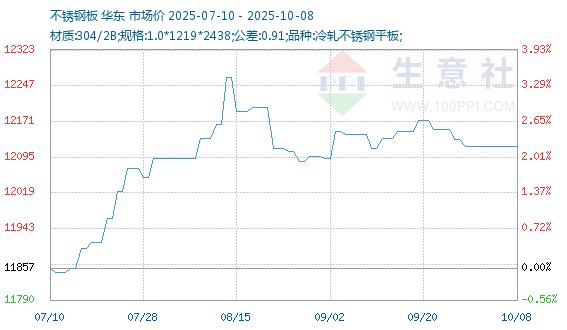 10月3日生意社不锈钢板基准价为12117.14元/吨